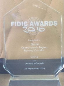 2016年9月26日,國際咨詢工程師聯(lián)合會(FIDIC,菲迪克)在摩洛哥古城馬拉喀什舉行2016年年會,會上評選并表彰了來自中國、美國、俄羅斯等7個(gè)國家的21個(gè)工程項(xiàng)目,中鐵工程設(shè)計(jì)咨詢集團(tuán)有限公司勘察設(shè)計(jì)的山西中南部鐵路通道勇摘“菲迪克2016年工程項(xiàng)目優(yōu)秀獎(jiǎng)”。