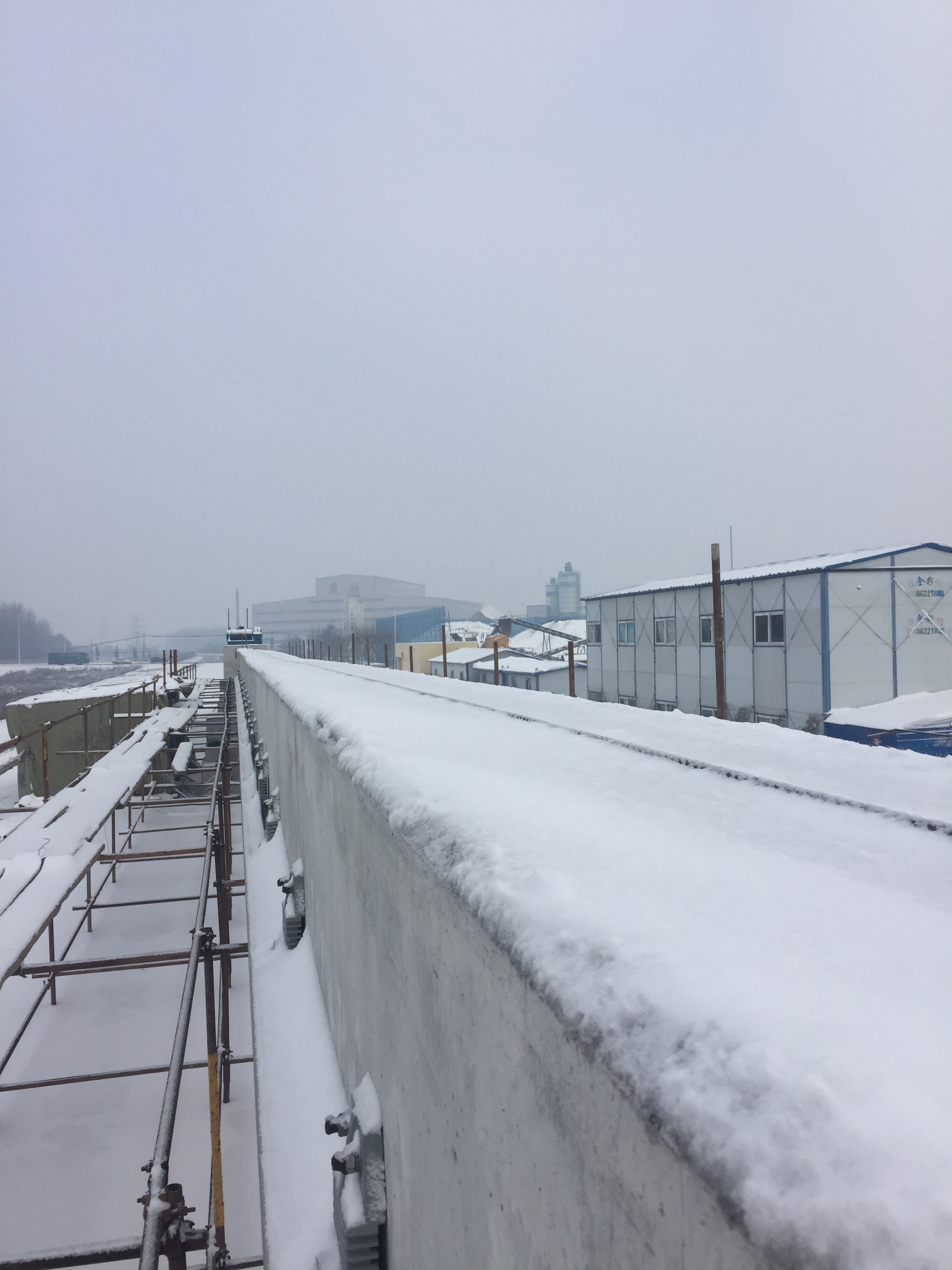 11月5日,吉林市迎來(lái)今冬的第一場(chǎng)中雪,試驗(yàn)梁面結(jié)冰嚴(yán)重,中鐵咨詢橋梁院?jiǎn)诬壢诒╉?xiàng)目組針對(duì)這一特殊工況成功地進(jìn)行了一次融冰雪試驗(yàn)。