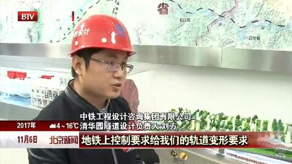此次盾構(gòu)始發(fā)儀式,受到了多家中央、北京市和行業(yè)媒體的關(guān)注。中鐵設(shè)計城交院高級工程師、清華園隧道專業(yè)設(shè)計負(fù)責(zé)人劉方接受了多家媒體的采訪。