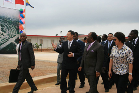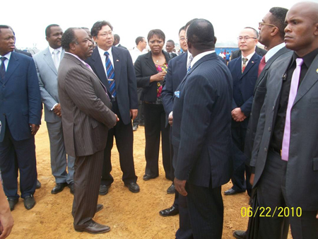 當(dāng)?shù)貢r(shí)間2010年6月22日上午11:00,加蓬共和國(guó)總統(tǒng)阿里•邦戈到訪我援建加蓬體育場(chǎng)工地,阿里•邦戈總統(tǒng)首先聽取了中方有關(guān)單位人員的工程進(jìn)度匯報(bào),然后在我駐加使館李富順大使和胡平參贊的陪同下參觀了施工現(xiàn)場(chǎng)。參觀過程中,阿里•邦戈總統(tǒng)對(duì)我援助加蓬體育場(chǎng)的優(yōu)質(zhì)設(shè)計(jì)和施工進(jìn)度非常滿意,同時(shí)對(duì)中方大力支持加方承辦2012年非洲杯足球賽,并為加蓬設(shè)計(jì)了一座現(xiàn)代化的體育場(chǎng)表示感謝。他離開時(shí)表示今年年底還會(huì)再來參觀。