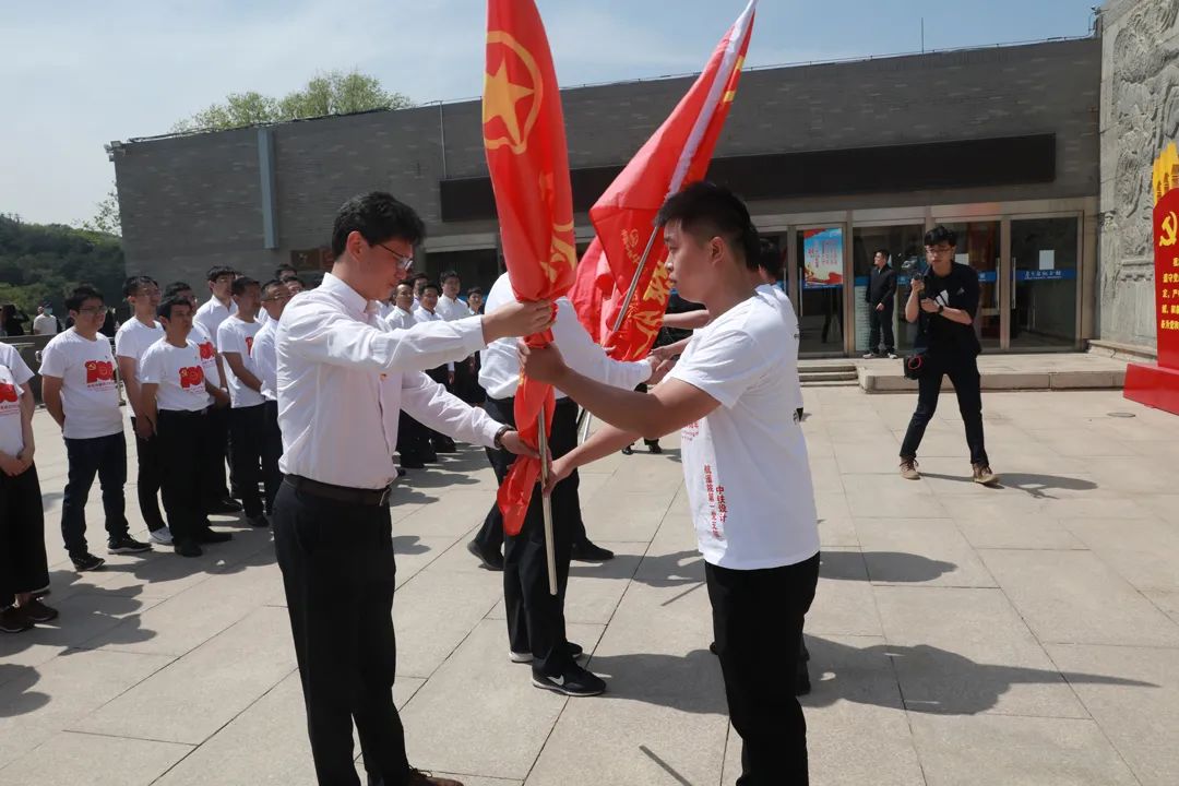 在詹天佑紀(jì)念館前,全體黨員干部凝視詹天佑雕像,重溫了入黨誓詞。我院王磊同志代表航遙院接過了平漯周新建鐵路項目的“青年突擊隊”旗幟,這面旗幟,代表的是光榮、責(zé)任與使命,需要全體航遙人團(tuán)結(jié)一心、眾志成城,發(fā)揚孺子牛、拓荒牛以及老黃牛的“三?!本?,不用揚鞭自奮蹄。