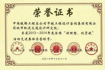 由于活動開展出色、成績顯著,2014年城交院被股份公司授予“中國中鐵股份有限公司‘講理想、比貢獻’先進集體”稱號,并被推薦參加全國的先進集體評比。此次中鐵咨詢城交院榮獲全國“講理想、比貢獻”活動先進集體,不僅是城交院的光榮,同時也為集團公司和股份公司贏得了榮譽。