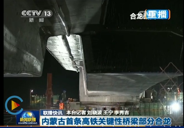 5月18日凌晨1點(diǎn)50分,由中鐵工程設(shè)計(jì)咨詢(xún)集團(tuán)有限公司設(shè)計(jì)的內(nèi)蒙古首條高速鐵路張呼鐵路蒙古營(yíng)印河特大橋40+56+40m連續(xù)梁38、39號(hào)墩梁轉(zhuǎn)體合龍圓滿(mǎn)成功,整個(gè)轉(zhuǎn)體過(guò)程用時(shí)37分鐘,大橋成功跨越集包二線(xiàn)。中央電視臺(tái)、新華社、內(nèi)蒙古電視臺(tái)對(duì)施工全程進(jìn)行了現(xiàn)場(chǎng)跟蹤報(bào)道。
