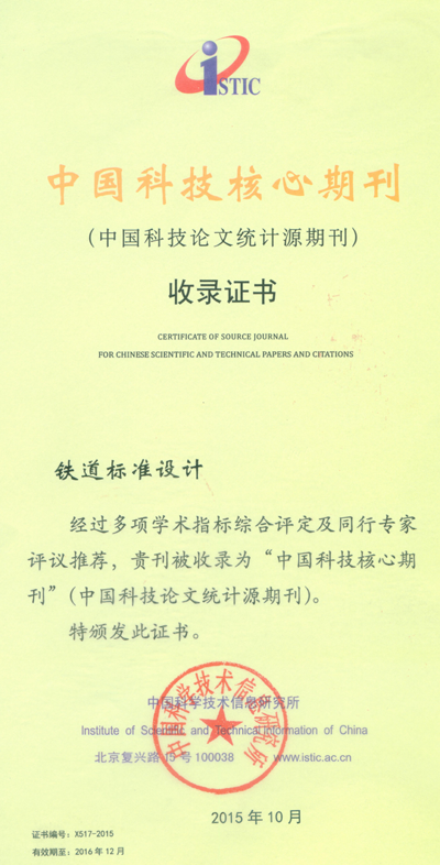 10月21日,中國(guó)科學(xué)技術(shù)信息研究所在北京舉辦了“中國(guó)科技論文統(tǒng)計(jì)結(jié)果發(fā)布會(huì)”。會(huì)上發(fā)布了“2015中國(guó)科技期刊引證報(bào)告(核心版)”。中鐵咨詢集團(tuán)主辦的《鐵道標(biāo)準(zhǔn)設(shè)計(jì)》期刊被收錄為“中國(guó)科技核心期刊”,并被收入中國(guó)科技論文與引文數(shù)據(jù)庫(kù)(CSTPCD),這是自2006年以來《鐵道標(biāo)準(zhǔn)設(shè)計(jì)》期刊連續(xù)10年被中國(guó)科技核心期刊收錄。