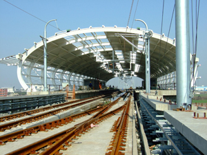 上海軌道交通9號(hào)線一期是市政府“十五”計(jì)劃重大工程項(xiàng)目之一,自松江新城站到宜山路站全長(zhǎng)31.336公里,沿途設(shè)車(chē)站12座,分別為松江新城站,大學(xué)城站,佘山旅游度假區(qū)站,泗涇站、九亭站、七寶站、外環(huán)線站、合川路站、虹梅路站、桂林路站、宜山路站。九號(hào)現(xiàn)一期工程松江段全長(zhǎng)20.5公里,設(shè)車(chē)站6座,其中松江新城站和九亭站為地下車(chē)站,并在九亭設(shè)車(chē)輛段及基地一個(gè),供列車(chē)??烤S修之用。中鐵咨詢(xún)集團(tuán)承擔(dān)了佘山~九亭段區(qū)間設(shè)計(jì),其中:高架區(qū)間9.2公里,地面線0.5公里。工程已建成通車(chē)。