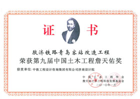 青島火車站QC攻關(guān)小組,共獲得國(guó)家級(jí)獎(jiǎng)2項(xiàng),省部級(jí)獎(jiǎng)3項(xiàng);獲得國(guó)家級(jí)優(yōu)秀咨詢成果二等獎(jiǎng),國(guó)家級(jí)優(yōu)秀設(shè)計(jì)二等獎(jiǎng),鐵道部?jī)?yōu)秀設(shè)計(jì)一等獎(jiǎng),第九屆中國(guó)土木工程詹天佑獎(jiǎng)。