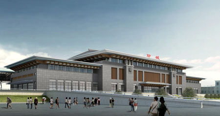 聊城地處經(jīng)濟(jì)發(fā)達(dá)的山東省,居魯西,臨河南、河北,京九鐵路、邯濟(jì)鐵路在此交匯。聊城站設(shè)計(jì)旅客最高聚集人數(shù)2500人,為中型旅客車(chē)站。站房總建筑面積14950㎡,南北長(zhǎng)164.8m,東西寬43.4m,共三層,總高度28.9m。建筑造型取意于聊城的象征——光岳樓,左右對(duì)稱(chēng)的布局、精細(xì)的雙重屋檐、厚重的墻體、古樸的色彩,使得整個(gè)站房雄渾、穩(wěn)重,并富有傳統(tǒng)韻味,體現(xiàn)了 “運(yùn)河古都”聊城的城市特色。