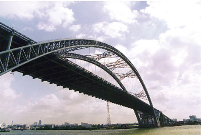 丫髻沙大橋位于廣州市環(huán)城高速公路東南三環(huán),橫跨水流湍急的珠江航道,有76+360+76米三跨連續(xù)自錨中承式鋼管混凝土拱橋、86+160+86米三跨連續(xù)預(yù)應(yīng)力混凝土剛構(gòu)和6跨40米預(yù)應(yīng)力混凝土簡支梁組成,全長1084米,其主跨360米鋼管拱在當(dāng)時全世界同類型拱橋中名列第一,同時創(chuàng)造了橋梁綜合轉(zhuǎn)體世界第一的技術(shù)指標(biāo)。