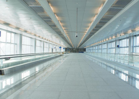 深圳皇崗-香港落馬洲人行通道橋跨深圳河,連接深圳地鐵四號線皇崗站聯(lián)檢樓和香港東鐵支線落馬洲站聯(lián)檢樓,為雙層全封閉橋面,點式駁接玻璃幕墻,橋面設置自動人行道。結(jié)構(gòu)為雙索面異形獨塔斜拉橋,主跨133.65 m,主梁采用不設斜桿的鋼框架結(jié)構(gòu),為世界首座雙層異性塔斜拉橋。