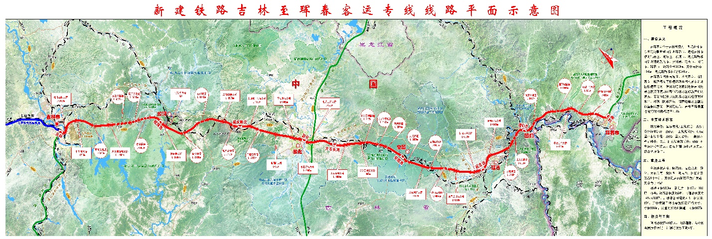 吉林至琿春高鐵位于吉林省境內(nèi),西起吉林市,途經(jīng)蛟河、敦化、安圖、延吉、圖們等縣市,東止延邊朝鮮族自治州琿春市,線路全長(zhǎng)360.986km,設(shè)計(jì)時(shí)速250km/h。吉林站為接軌站,新建蛟河西、威虎嶺北、敦化、大石頭南、安圖西、延吉西、圖們北、琿春共8座車(chē)站。