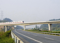 廣州軌道交通四號線列車采用直線電機列車,4節(jié)編組,最高運行速度達90km/h。線路坡度達55‰,高架區(qū)間全長22km,采用主跨30m,輔助跨度25m的整孔預制箱梁和節(jié)段預制箱梁。中鐵咨詢集團承擔第二和第七標段設計工作。