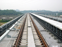 在設計工作中,中鐵咨詢集團設計人員根據(jù)直線電機牽引系統(tǒng)的特點,在國內(nèi)城鐵高架線上首次采用了預制道床板、砂漿填充墊層的高架橋板式軌道技術。本結構方案特點是,結構整體強、穩(wěn)定性好,軌道施工質(zhì)量高,便于感應板、三軌和鋼軌的精確定位;與其它工法相比,在高架線路上施工作業(yè)空間大,方便各工序的交叉作業(yè)流程,施工效率比較高。